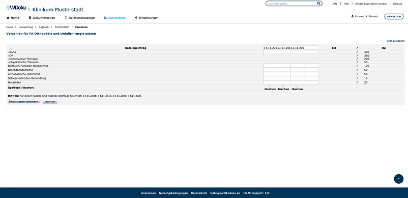 In der Leistungsliste sehen Sie die Ihnen zugeordneten Leistungen. Sie können hier Leistungen bearbeiten, hinzufügen und bestätigen. Leistungen die nicht im Kliniksystem (KIS) hinterlegt und trotzdem für Ihre Weiterbildung relevant sind, können manuell hinzugefügt werden. Klicken Sie auf „Hinzufügen“ um eine neue Leistungen anzulegen.